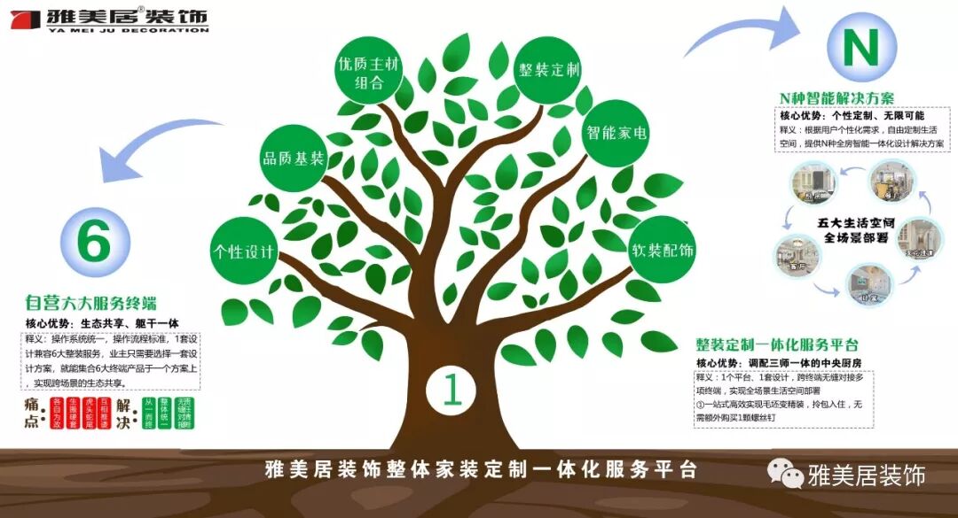 1个企业宗旨,穿越4个五年计划,实现4次品牌升级。雅美居装饰的每一次品牌升级,都是精准切好市场动脉,洞察趋势,提前布局,最终占得先机。“平价整装”“平价做精品”“最高性价比,最大质价比”,始终是雅美居装饰不变的企业发展宗旨。1+6+N平价整装体系,将扛起新旗帜,完成品牌迭代与品牌认知的升级融合。