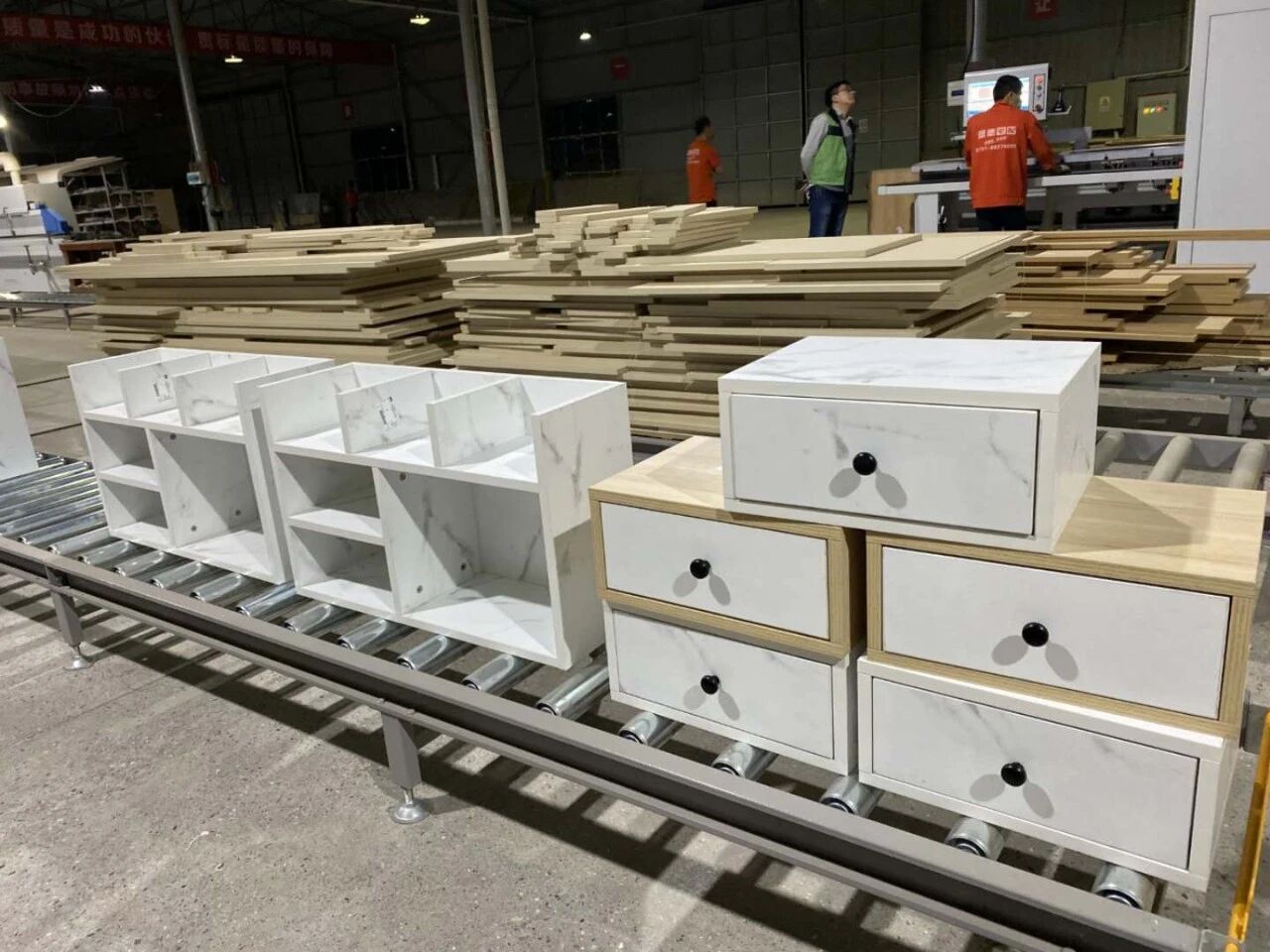 定制工厂:全自动机械化设备做好材料的封边排孔,再采用优质环保热熔胶,斑德宅配工厂就是用德国胶王品牌,其环保及性能达到国际环保标准。